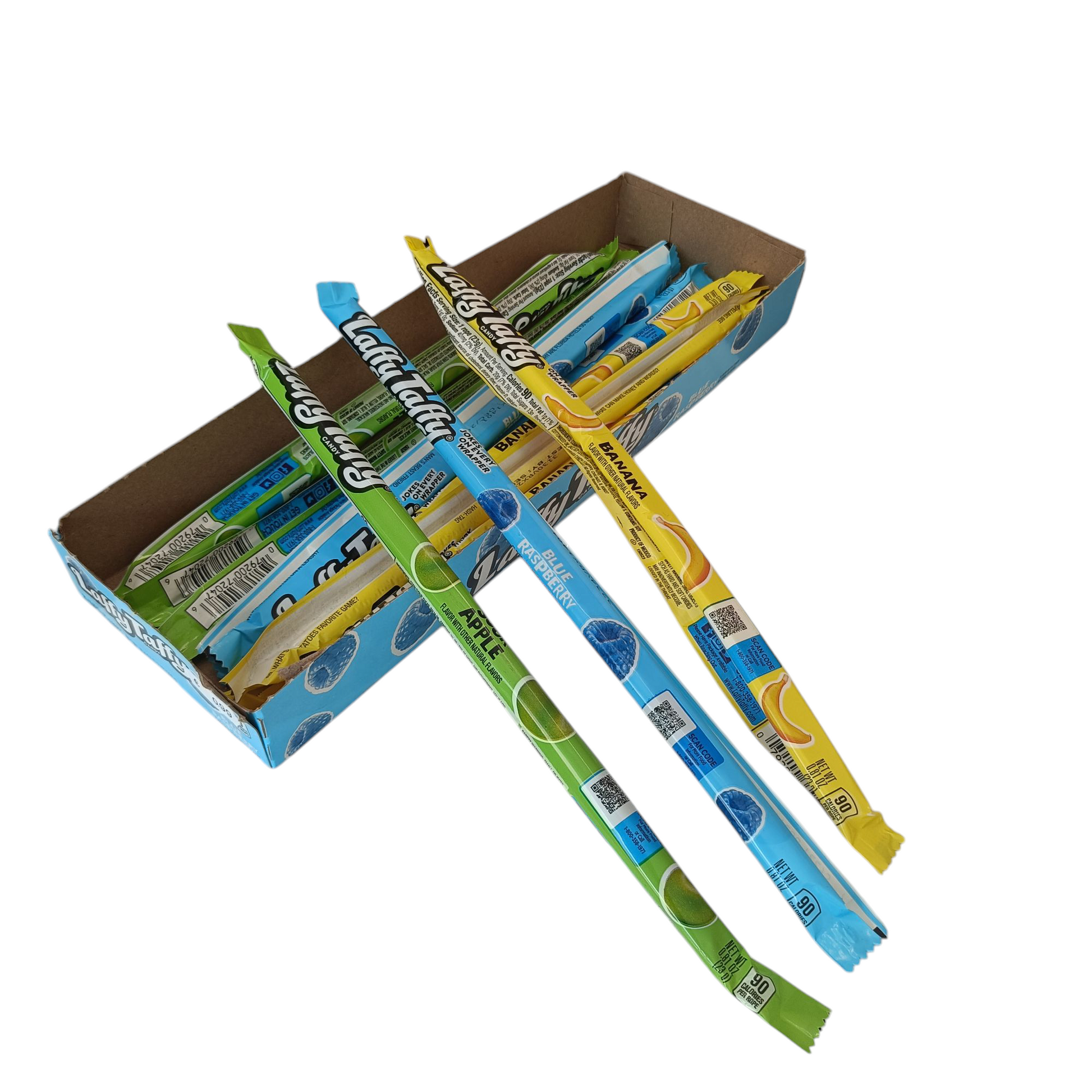 Esperienza un'esplosione di gusto con le caramelle Laffy Taffy! Si sciolgono in bocca e ti deliziano con il loro sapore unico di banana, blue raspberry o sour apple. Prova tutte le varianti e trova la tua preferita!