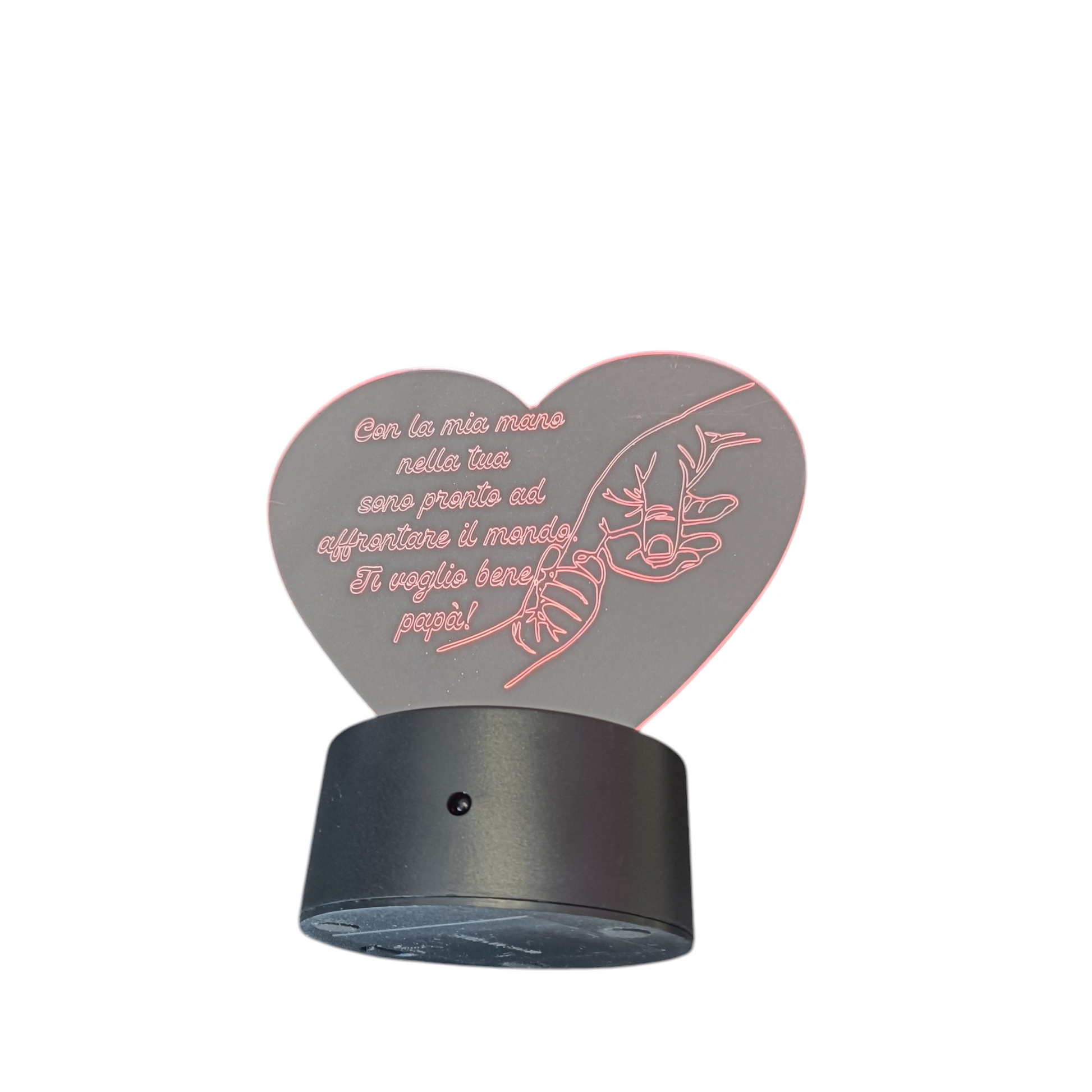 Lampada effetto 3D con scritta e disegno stilizzato personalizzato, a forma di cuore o quadrato. Base luminosa inclusa